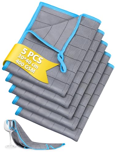 Euqvunn Carbon Microfiber Rengöringsdukar, 5 Pack, 30 x 40 cm, 400GSM, Lintfria, Rutmönster för Ihållande Smuts och Fett, För Hem, Kök, Bil och Fönsterputsning - Blå