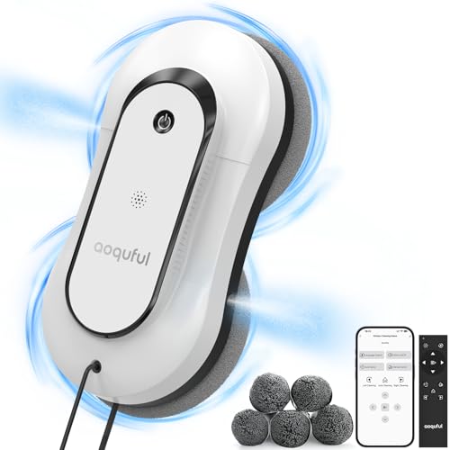 Aoquful Intelligent Window Cleaning Robot - Elektrisk fönsterrenare med dubbel vattenspray, fjärrkontroll & appkontroll, lämplig för inre & yttre fönster, inkluderar 12 trasor, vit