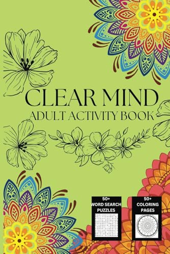 Clear mind Adult activity book: A calming collection of mindful word search puzzles and coloring pages