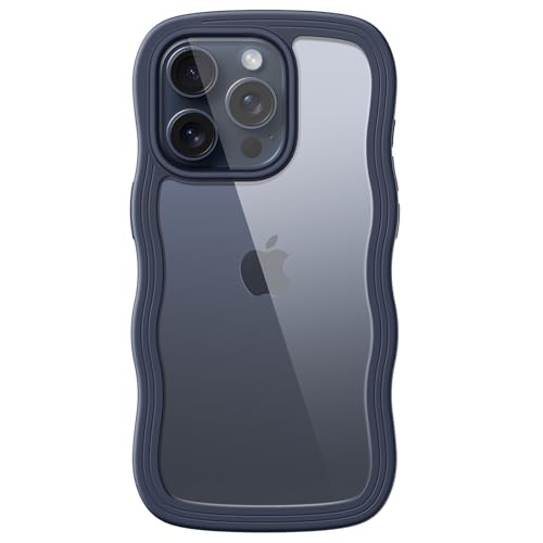 JETech Söt Fodral för iPhone 15 Pro 6,1-Tum, Vågformat Lockigt Stötskyddat Mobilskal för Kvinnor och Flickor, Clear Hård PC Baksida (Blå)