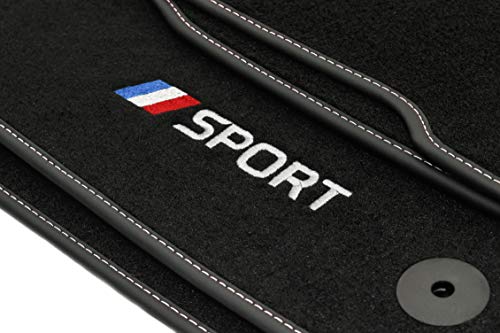 Mats Set tillverkad för RENAULT CLIO SPORTER år 2013 till 2019 i Automotive Carpet Made in Italy SVART med logotyp