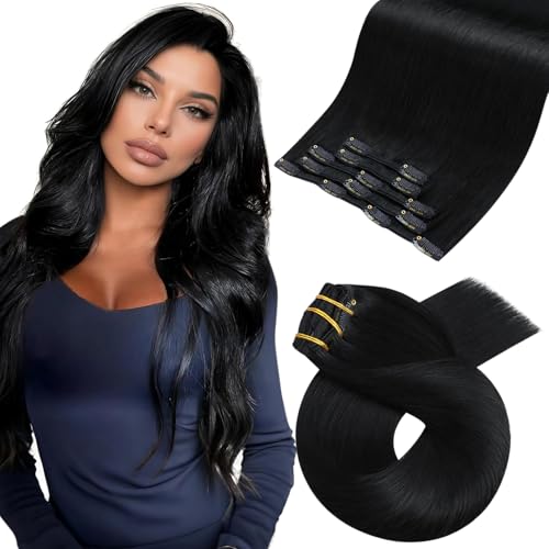 Moresoo Svart Löshår Clip in Människohår Svart Hår Remy Hair Extensions Clip ins Real Human Hair Rakt Hårförlängning 50 cm 5st 80g #1