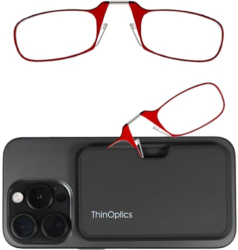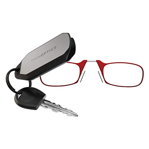 ThinOptics läsglasögon 1,50 röda ramar med nyckelringfodral – kompakta vikbara rektangulära glasögon – clip-on nose – 1,50 styrka med Flex-Fit-teknik