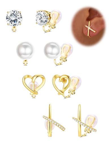 FIOROYAL Örhängen för kvinnor utan hål – guld silver klämma örhängen barn flickor – allergivänliga clips örhängen set zirkonia/blommor/twist/hjärta/pärla falska örhängen modesmycke present, Koppar