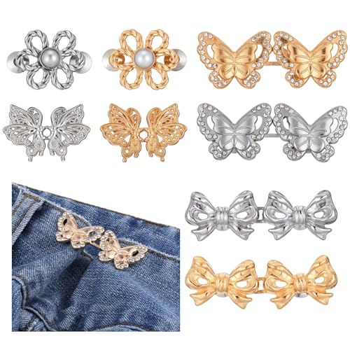 Lnngub 8 par byxor som gör tajt, 4 stilar byxor tajt gör clips av zinklegering avtagbart och justerbart midjespänne utan att sy knappklämma för byxor, jeans, kjolar (guld, silver), Guld, silver, 5 x 2