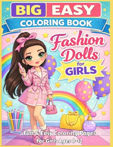 Fashion Dolls Coloring Book for Girls Ages 8-12: Cute and Stylish Outfits, Easy and Fun Coloring Pages for Kids and Tweens: Big Fashion Coloring Book ... Clothes and Simple Designs for Creative Girls