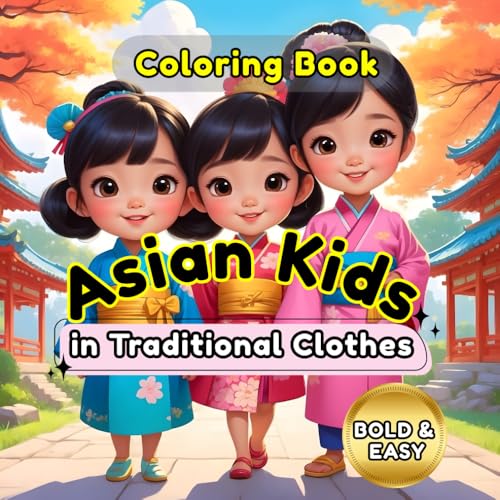 Asian Kids in Traditional Clothes: Bold and Easy Coloring Book: 60 Large Print Illustrations of Cultures Across Asia for Stress Relief and Cultural Education.