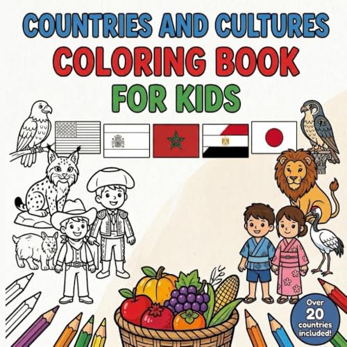 Countries and Cultures Coloring Book for Kids: Explore 20 Countries, Their Flags, Traditional Clothes, and National Animals