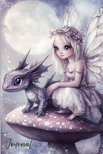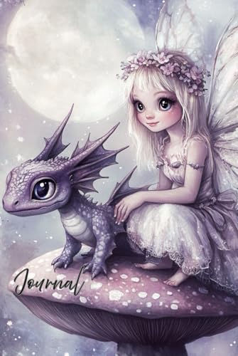 Angelic Companions Journal: A Magical Notebook Featuring a Realistic Angelic Fairy with Butterfly Wings Sitting on a Mushroom Beside a Cute Dragon in ... and Cloudy Purples — Perfect for Writing, Dra
