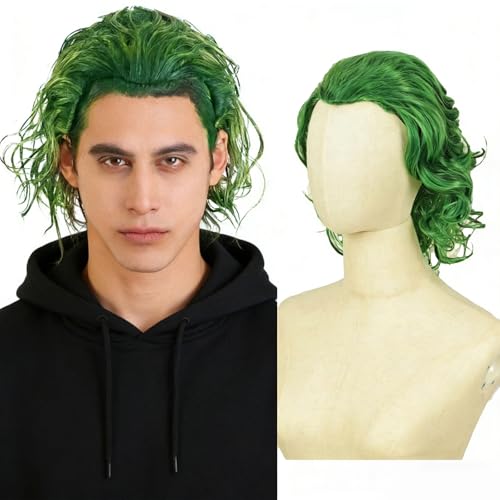QUEENTAS Clown Joker peruk män lockig kort cosplay peruk grön halloween karneval kostym party (grön)