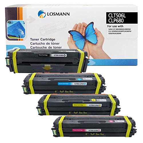 LOSMANN 4 x toner kompatibel med Samsung CLT-506L CLT-K506L C506L M506L Y506L ersättning för Samsung CLP-680 CLP-680DW CLP-680ND CLX-6260FD 6260FR CLX-6260FW CLX-6260ND CLX-6262626260 Premium Line