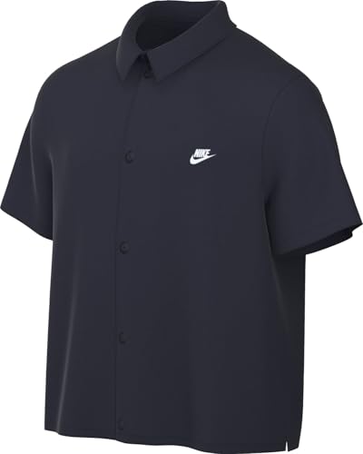 Nike Club kortärmad button-down skjorta för män, obsidian/vit, HJ2026-451, L