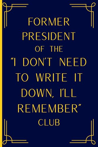 Former President of the "I don't need to write it down I'll remember" Club: Funny Notebook Gift for Friends Family Coworkers