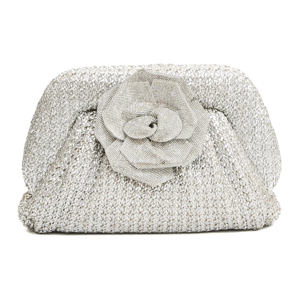 Amina Muaddi, Väskor , Dam, ONE Size, Silver Clutch med Vita Kristaller