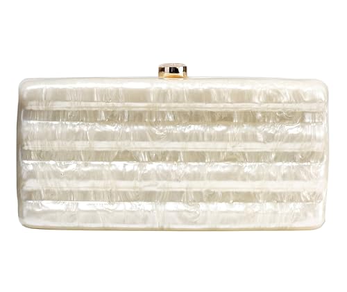 NUSTTAL Women Acrylic Clutch Purse Marbled Evening Shoulder Bag for Wedding Cocktail Party Prom (Ivory)