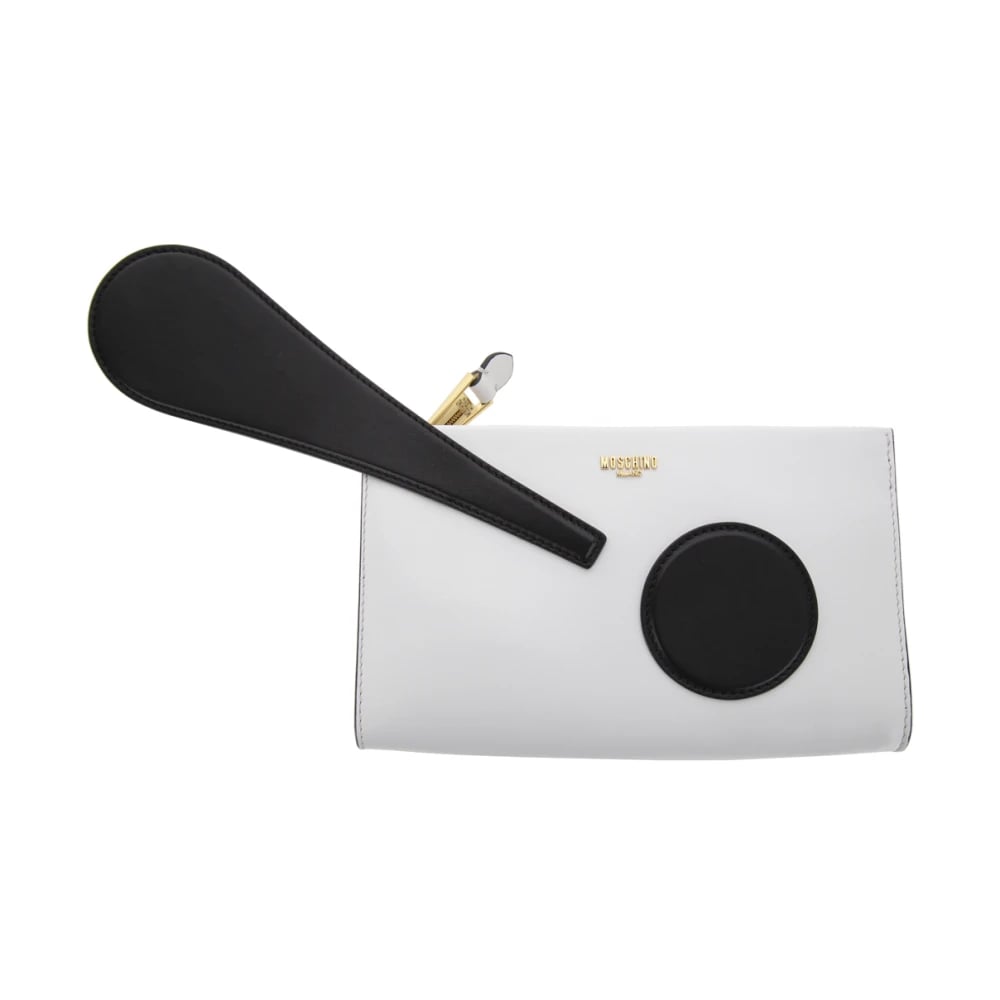 Moschino, Väskor , Dam, ONE Size, Läder, Utropstecken Clutch i vitt läder