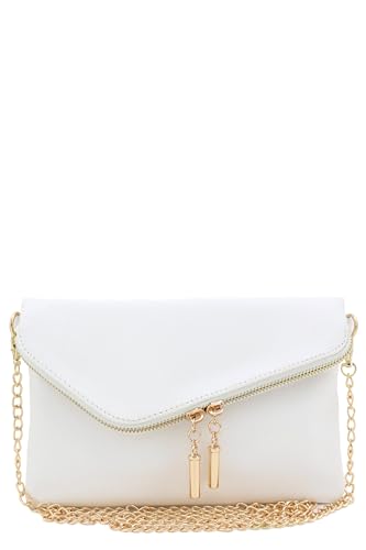 FashionPuzzle Envelope Wristlet Clutch Crossbody Bag with Chain Strap (White)