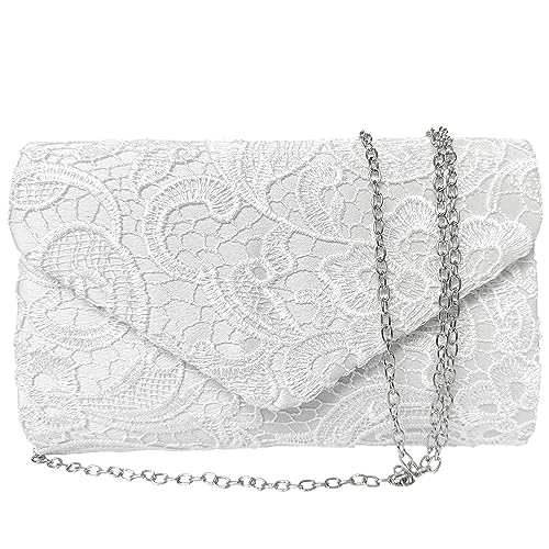 ATBUSS 1 spetsväska, multifunktionell clutch-väska, kuvertaxelväska, messengerväska, avtagbar axelväska,spetsblomväska, lämplig för middagsfest, mottagning (vit), Vit