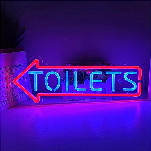 Anpassade toaletter pil LED neonskylt, strömförsörjd WC indikator neonljus med dimmer, för bar frisörsalong nattklubb toalett toalett ingång vägghängande dimbar dekoration,Left,50x19cm