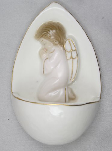 MaMeMi Porcelain Weihkessel Rosa Engel – Handmålat Weinkbecken 10,5 cm, Väggmonterat Holy Water Font, Dop & Kommunion Present för Flickor