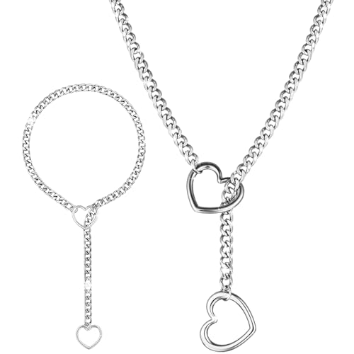 Mikqky Hjärtformad O-ringshalsband, hjärthalsband, hjärthalsband, Y-halskedja, punk hjärta, kraghalsband för kvinnor, punk tillbehör, hjärtformat hänge halsband (60 cm/23,6 tum), 60 cm/23,6 inch,