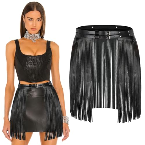 Svart streaming kjol damer fransar kjol bälte, mode konstläder tofs kjol midjebälte, festival rave outfit damer svart, punk gotiskt läder kjol cinch midjebälte för bikini klubb party cowgirl, 115 cm,