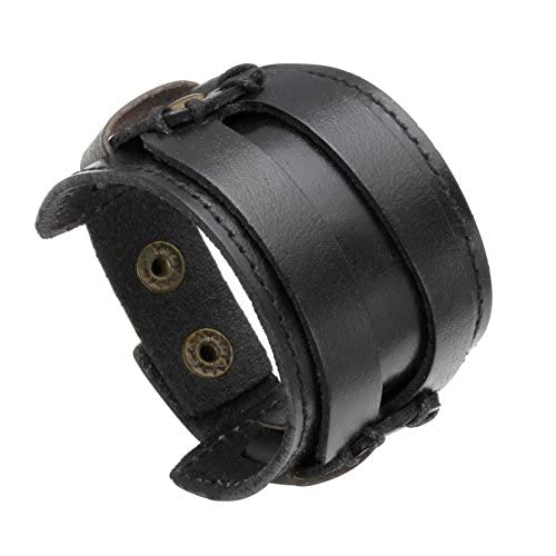 Milakoo Svart dubbad, bred rem med metallspikar, unisex, punk, rock, läderarmband för motorcykelknutte, kedja, justerbart armband, 25.40 cm, Läder