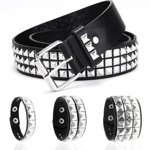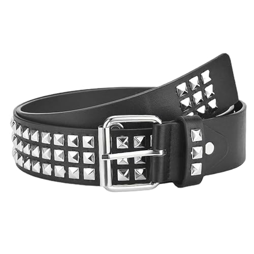 Newellsail nitbälte kjol nitar bälte PU-läder punk bälte med ljusa pyramidnitar för kvinnor och män gotiska kläder tillbehör (svart), svart, 110 cm