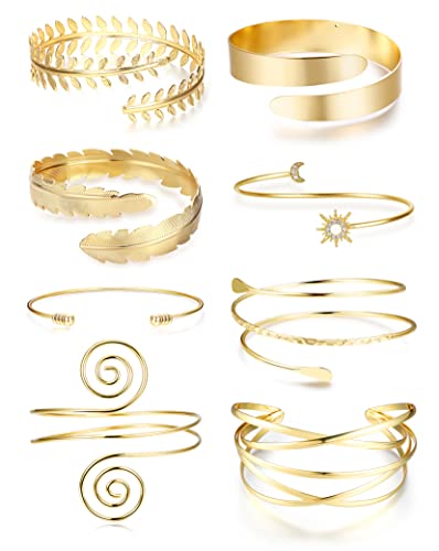 YADOCA 8 stycken överarmsarmband för kvinnor egirls justerbar överarmsmanschett set minimalistisk boho punk grekiskt armband virvelarm armband set justerbar, 8 cm, Legerat stål