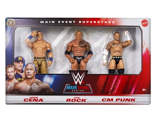 WWE John Cena, The Rock and CM Punk 3-pack Main Event actionfigurer Superstars Mattel Basic Series brottning actionfigur leksaker
