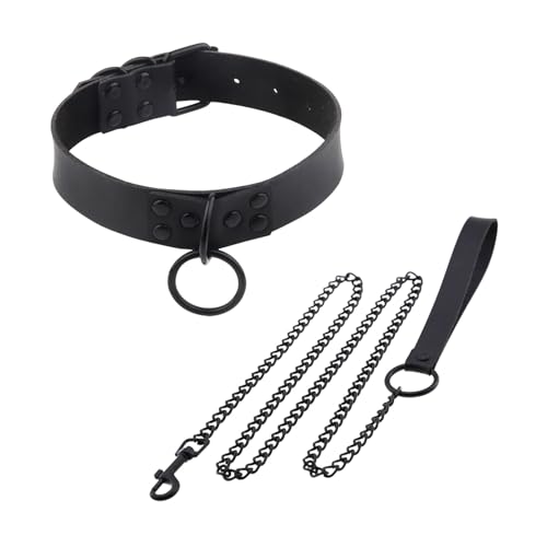 EUPSIIU Svart PU-läder punk choker, O-ring chokerhalsband för män kvinnor, sexiga gotiska kragbälten, justerbar PU kraghalsband, halloweentillbehör, för cosplay, 32-42 cm, Läder