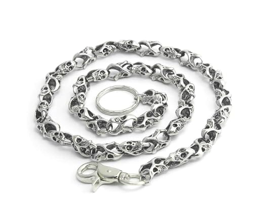 Plånbok Punk Kedja Herr 86 cm Med Skalle - Motorcykel och Byxkedjor Stöldskydd För Plånbok, Ficka och Nycklar - Silverfärger