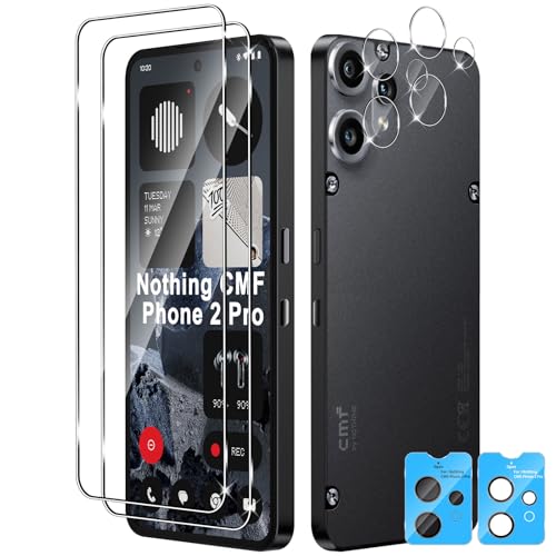 Wookfiss Skärmskydd för Nothing CMF Phone 2 Pro högupplöst 9H hårdhet anti-fall/repskydd härdat glas härdat glas (2) + skyddskamera(2)