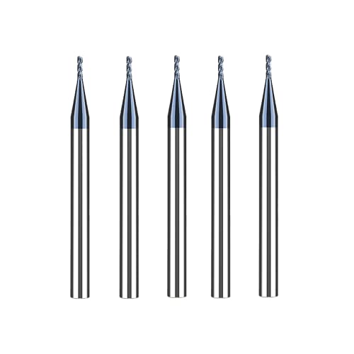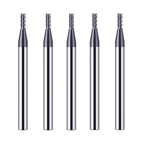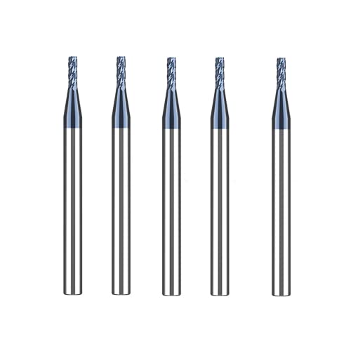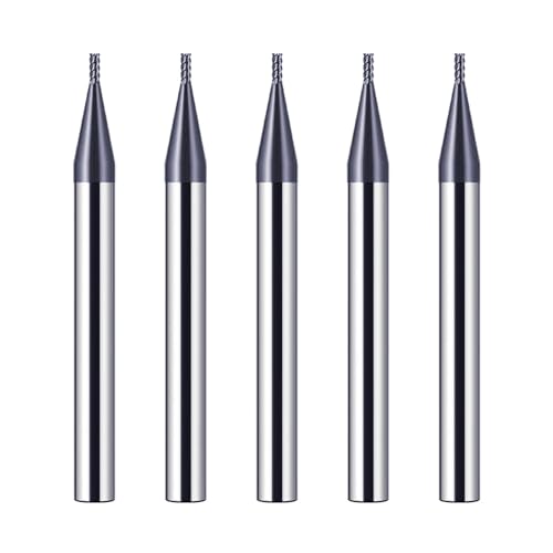 CREEYA 5 stycken VHM CNC fräs 1mm, 4 tänder/4 Skärning/4 flöjter volfram stål ändfräs, AlTiN svart beläggning planfräs, hårdmetall CNC fräs skaft 1mm För stål metall Trä Akryl Plast (1mm)