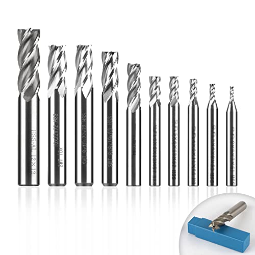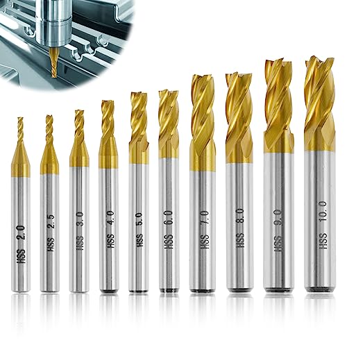 Efuturetime 10 stycken 4 flöjter HSS skaftfräsar 2-12 mm, CNC-fräs-set, cylinderskaft skaftfräs snabbstål för aluminium, trä, plexiglas, precisionsarbete