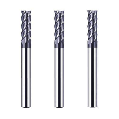 CREEYA 3 stycken VHM CNC fräs 5mm, 4 tänder/4 Skärning/4 flöjter volfram stål ändfräs, AlTiN svart beläggning planfräs, hårdmetall CNC fräs skaft 5mm För stål metall Trä Akryl Plast (5mm)