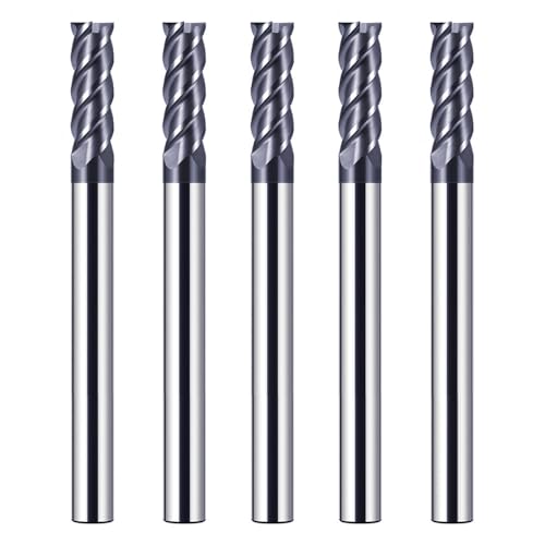 CREEYA 5 stycken VHM CNC fräs 4mm, 4 tänder/4 Skärning/4 flöjter volfram stål ändfräs, AlTiN svart beläggning planfräs, hårdmetall CNC fräs skaft 4mm För stål metall Trä Akryl Plast (4mm)
