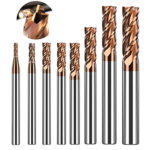 Oudtinz 8 st ändfräs bits HSS CNC fräs borrkronor för trä, aluminium, stål, titan, rak 4