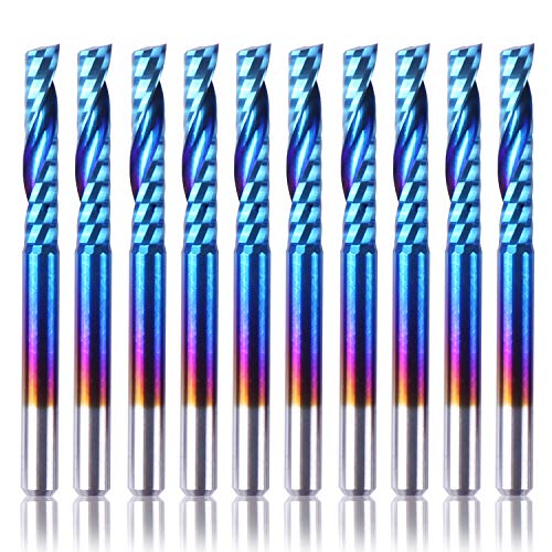 SainSmart Genmitsu 10 st Nano Blue Coat platt näsa skaftfräs CNC-fräs, 1/8 tum axel spiral Upcut enkel 1 flöjt skaftfräs set (3,175 x 17 x 38 mm)