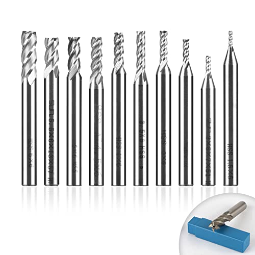 Efuturetime 10 stycken 4 flöjter HSS skaftfräsar 1,5-6 mm, CNC-fräs-set, cylinderskaft skaftfräs snabbstål för aluminium, trä, plexiglas, precisionsarbete