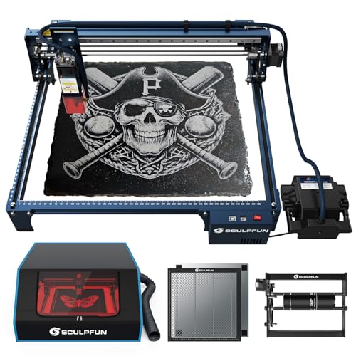 SCULPFUN S30 PRO Laser gravyrmaskin med automatisk luftassistent, B1-hölje, laserrotationsrulle, laserhonungskaka arbetsbord, 10 W utgångseffekt CNC skärning lasergravyr maskin för trä metall