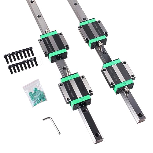 GooEquip linjär gejd, 2 stycken HGR20 500 mm linjärskena med 4 stycken HGW20CC lagerblock för DIY 3D-skrivare, CNC-maskin, elektriska apparater, svarvar, linjär styrskena