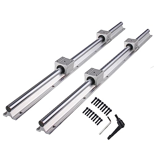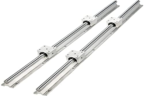 CNCYEAH 2 stycken linjärskenor, SBR16 – 1 000 mm, 16 mm linjärlager, skena, glidguide, axel + 4 stycken SBR16UU-skjutblock, för 3D-skrivare och CNC-maskin, silver