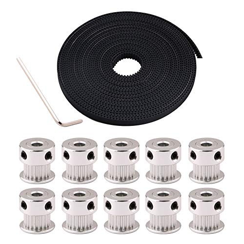 FULARR® 5 m professionell 3D-skrivare GT2 tidsbälte, 2 mm vinkel 6 mm brett gummi tidtagningsbälte, med 10 st 5 mm 20 tänder aluminium timing remskiva och 2 mm insexnyckel för 3D-skrivare CNC-maskin