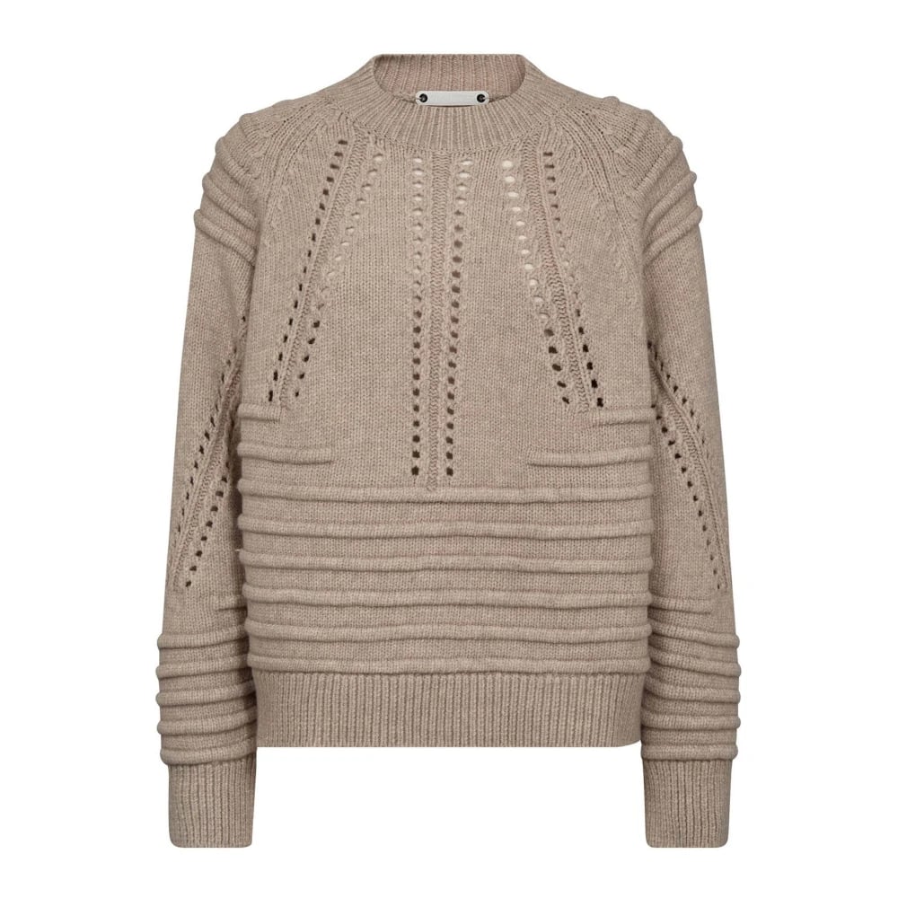 Co'Couture, Stickade Tröjor , Dam, M, Grå ulltröja med O-Neck