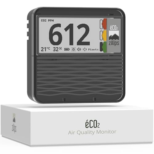 zAlps Eco2 - Övervakning av luftkvalitet inomhus - exakt och hållbar CO2-detektor - CO2-sensor, temperatur och fuktighet - autonom och bärbar - perfekt för hem/kontor/skola