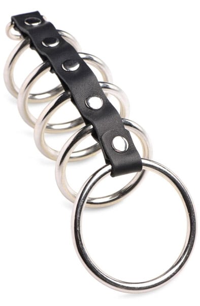 OhMama fetish leather strap metal ring cock cage with ball divider