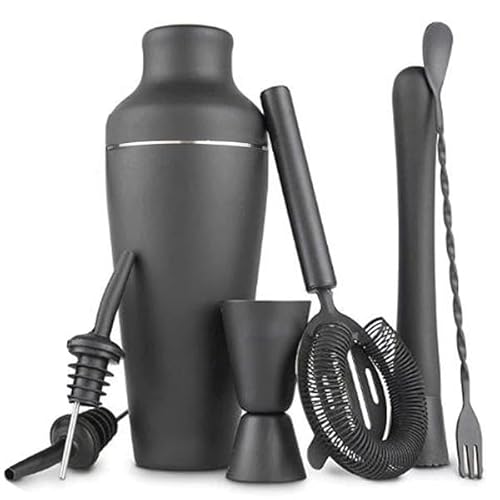BarDeluxe® Boston Shaker Set 5-Delat, Bartender Cocktail Mix - 750ml Shaker, Rostfritt Stål Tillbehör - Lyx Presentset Med Väska Och Receptbok (Svart)