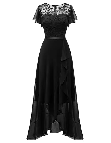 Berylove cocktailklänning dam elegant för bröllop fladdermusärmar rockabilly klänningar aftonklänning lång med ärmar fram kort bak lång, svart, M