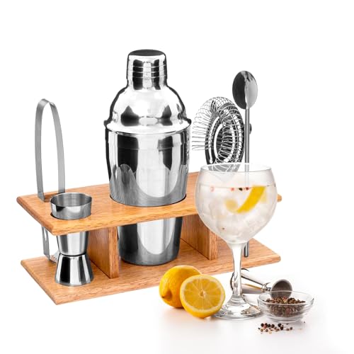 Avilia Cocktailpaket 6 delar – cocktailset med skakare, mixer och tillbehör | Rostfritt stål och trä, perfekt för nybörjare och proffs